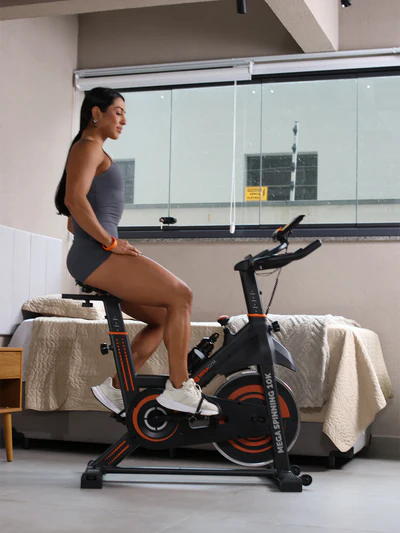 O que você leva: Aqui estão as bicicletas Magnéticas Verticais e os modelos de entrada de Spinning Mecânico. A grande vantagem da magnética é o silêncio: você pedala assistindo TV sem precisar aumentar o volume.